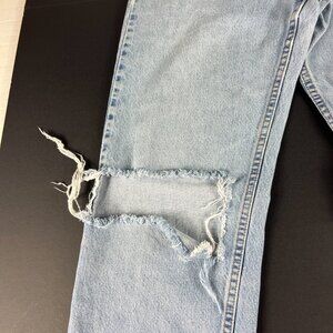 Style- Jeans 90s Loose High Rise Light Blue Faded Thrashed Distressed Cotton Denim USA