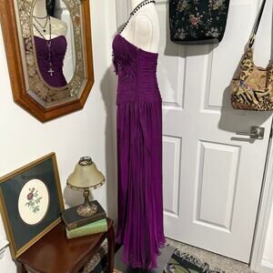 Vintage 90s Liancarlo Couture by Saks Fifth Avenue stunning deep plum purple shifty silk ruched beaded floral embellished stunning strapless formal maxi dress with pleated lining and corset boning - Size 2/X-Small, see measurements below!