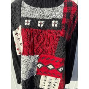 VTG 90s Liz Claiborne L Cable Knit Patchwork High Neck Pullover Sweater Knit