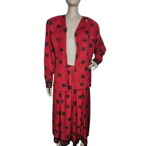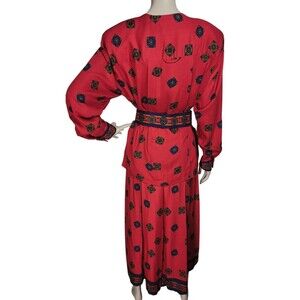 VTG 90s Liz Claiborne Medallion Print High Shoulder Skirt Blouse Belt Size 10