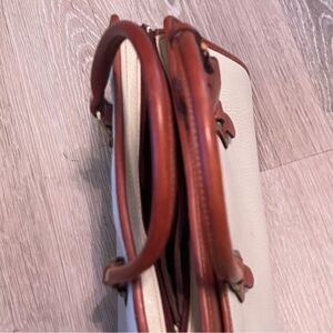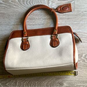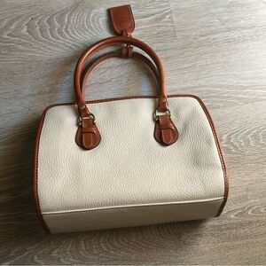 Liz Claiborne Leather Rolled Dual Handle Cream Pebbled Leather brown Bag Purse