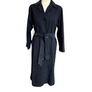VTG 90s London Fog Trench Coat Womens 2 Petite Black Preppy Minimalist Long