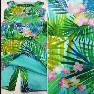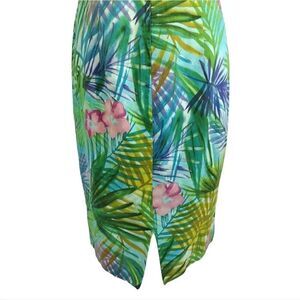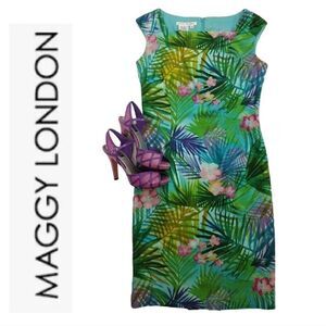 VTG 90s Maggy London Green Tropical Sleeveless Linen Blend Dress Size 8