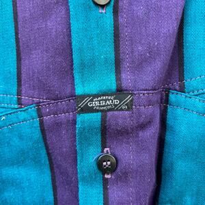 VTG 80s 90s Marithe Francois Girbaud Teal Purple Vertical Stripe Funky Pockets L/S Button Up Shirt