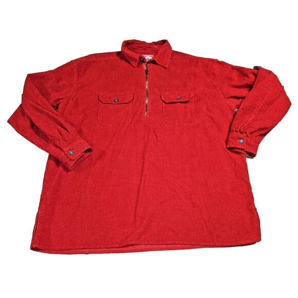 VTG 90s Marlboro Unlimited Red Corduroy 1/2 Zip Pullover Shirt Jacket XL XLarge