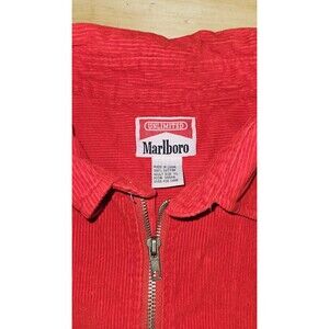 he VTG 90s Marlboro Unlimited Red Corduroy 1/2 Zip Pullover Shirt Jacket in XL size is a stylish and nostalgic piece for men. Made of 100% cotton corduroy, this jacket features a solid red color with the iconic Marlboro branding. It has a pullover style with a 1/2 zip closure and convenient pockets, making it both functional and fashionable. Perfect for those looking to add a touch of 90s flair to their wardrobe, this jacket is a unique and comfortable choice for any casual or outdoor look.