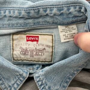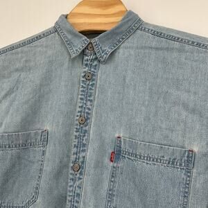 Vintage 90s Men's Levi's Red Tab Button Up Down Blue Denim Jean Long Sleeve Shirt XL