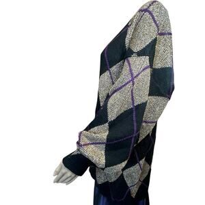 Vintage 90s Metallic Argyle Crewneck Academia Sweater Women's Plus Size 24W Festive Holiday Party Gold Black Purple Sheridan Square Sparkly Pullover Cosby