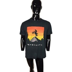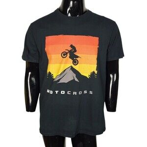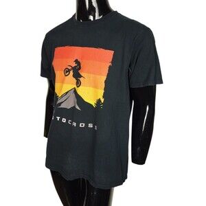 VTG 90s Motocross Horizen Sunset Mountain Outdoors Short Sleeve T-Shirt Large