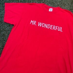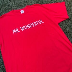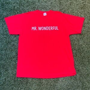 Simple cool Vintage VTG 90’s Mr. Wonderful Red Tee , nice simple print on comfortable minimal wear 90s tee .