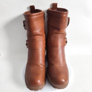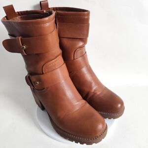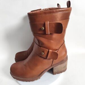 VTG 90s Mudd Henry Brown Moto Chunky Platform Heel Mid-Calf Boots 7 M Y2K Biker