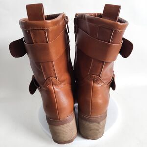 Biker, motorcycle, boho, moto,retro, edgy, lug sole, chunky block heel, trendy, vintage, leather, warm neutral color, comfortable, classic, capsule wardrobe, closet staple, essential, basic, versatile, timeless, chic, vegan, camel tan
