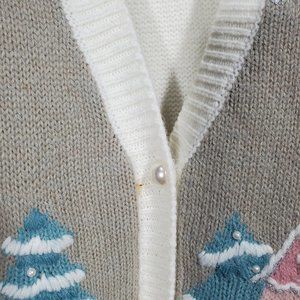 Vintage (1990s) Napa Valley knit cardigan sweater vest with a winter cottage scene.