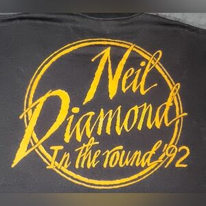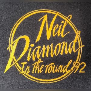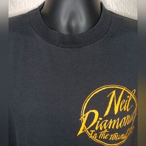 Vintage 90s Neil Diamond In the Round Adult One Size Band T-shirt Single Stitch USA EUC Black 1992 In Things Tag 50/50 Cotton/Polyester Crewneck Short Sleeve Double-sided Graphic Print Made In USA Concert Tour Tee Official Merchandise One Size Fits All True Vintage