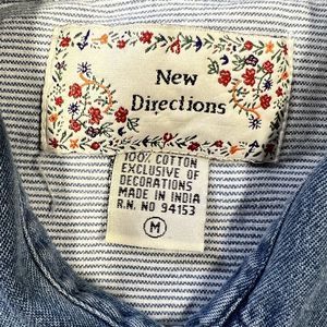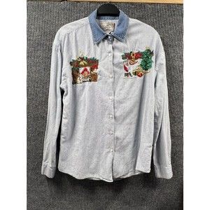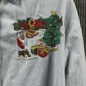 VTG 90’s New Directions Shirt Women Large Blue Stripe Christmas Embroidered Top