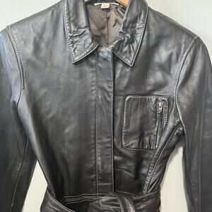 Vintage 90s Y2K Leather Belted Coat Dressy Office Career