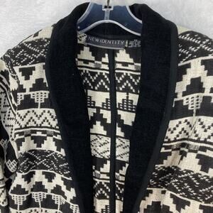 VTG 90s New Identity Sweater Jacket Womens M Black White Geometric Western Aztec