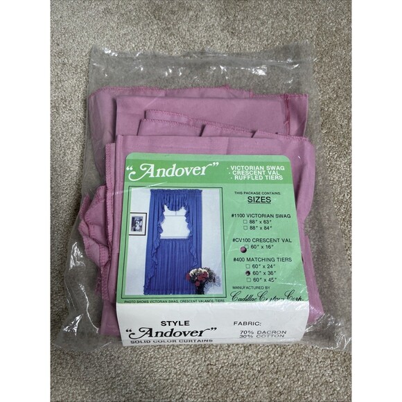 VTG 90s New Retro Pink Andover Crescent Valance 60x16” & 2 Ruffled Tiers 28x36”