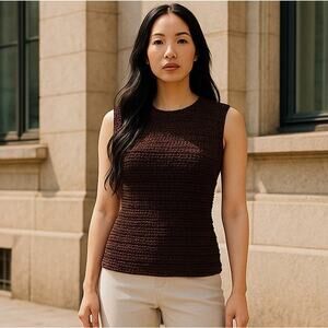 VTG 90s Nicola Smocked Tank Top S Mocha Brown Fitted Y2K Rave Club Clubbing Shirred Prep