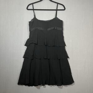 VTG 90s Nine West 100% Silk Tiered Black Cocktail Party Dress Size 14 Plus