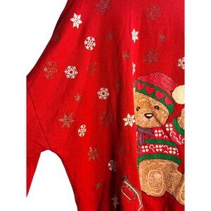 vintage Christmas sweatshirt, plus size holiday sweater, teddy bear crewneck, women’s 20W sweatshirt, red Christmas top, oversized holiday pullover, snowflake sweatshirt, festive winter clothing, vintage plus size sweater, holiday fleece top