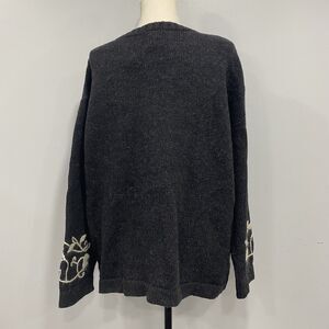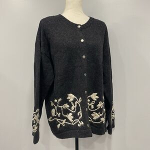VTG 90s OLD NAVY XL Gray Cardigan 100% Wool Sweater Floral Cottagecore Deadstock