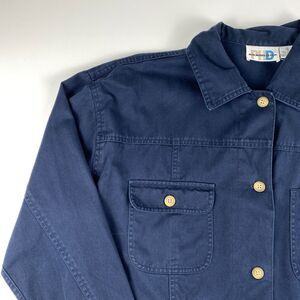 - Vintage Paul Harris shacket in solid navy blue cotton twill, womens small.