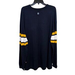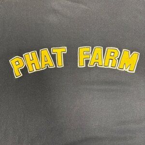 This sweater features a bold "Phat Farm" front logo and contrasting sleeve stripes, offering a stylish and relaxed fit for casual wear.