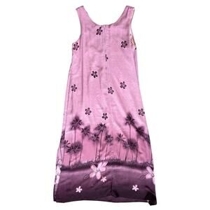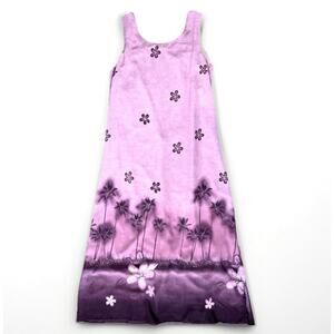 Phoebe Buffay, Friends, 90s, Y2K, 2000s, sheer mesh overlay, Hawaiian, floral, embellished, studded, glitter, tropical, vacation, beach, palm, maxi, long, longline, long-line, sleeveless, fully lined, breathable, travel, sheath, relaxed fit, easy care, lightweight, fairy, Barbiecore, Barbie, girly, feminine, delicate, dainty, ombre fading effect, purple/pink, multicolor, slit side