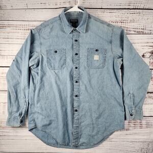 VTG 90s Polo Jeans Co Ralph Lauren Chambray Shirt Mens L Button Made Hong Kong