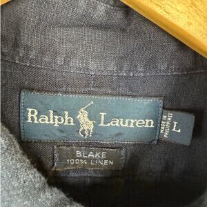 VTG 90s Polo Ralph Lauren 100% Linen Shirt Mens Sz L Navy Blue Blake Shirt