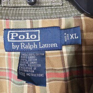 VTG 90s Polo Ralph Lauren Olive Green Zip Up Jacket XL Plaid Lined Field Classic