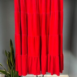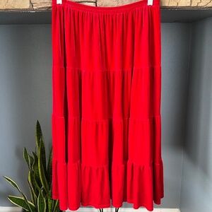 VTG 90s Pop of Red Velvet Tiered Maxi Skirt Stretch Comfy Holiday Christmas XL