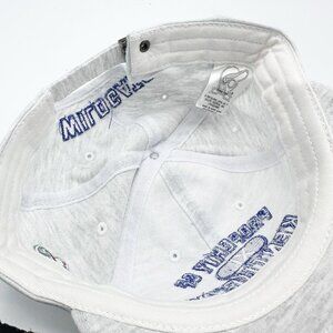 The VTG 90s Property Of Kentucky Wildcats Athletic Block Head Gray Strapback Hat by Global Caps is a stylish and nostalgic accessory for fans of the school. This officially licensed cap features the iconic Kentucky Wildcats team logo on the front, and embroidery on the back, making it the perfect choice for supporters of the team during the regular season. The gray color and one-size-fits-all design make it a versatile piece for both men and women who want to show their team spirit in style. Made in Hong Kong, this hat is a must-have for any die-hard Kentucky Wildcats fan looking to represent their favorite team in a unique and retro way.