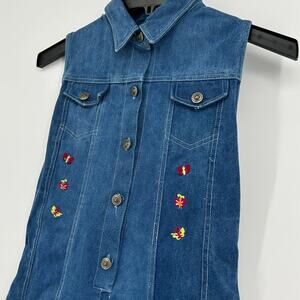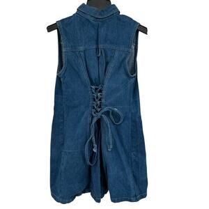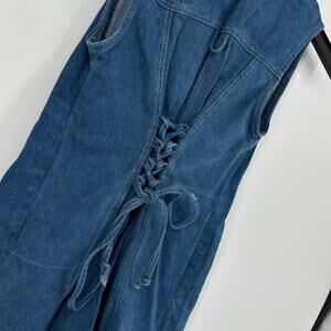 Vintage 90s Rachel's Kids Butterfly Embroidered Blue Denim Jean Corset Sleeveless Romper Dress