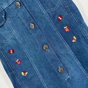 VTG 90s Rachel's Kids Butterfly Embroidered Blue Denim Jean Corset Romper Dress