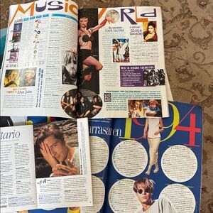 Spanish magazines Ragazza, Estrella, and a Mango Catalog featuring Claudia Schiffer. Great shape. Fun nostalgic graphics and photos. Perfect for fashion enthusiasts and collectors.