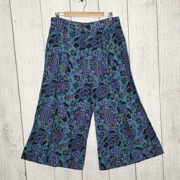 VTG 90s Rainbow-Jo Maui Hawaii Turtle Print Rayon Palazzo Pants, sz XL