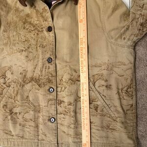 Such a cool unique piece of vintage 90s Ralph Lauren with equestrian hunting scenes all over, corduroy contrast collar and cuffs, hand pockets, button closure. There are faint spots on the front and some wear at the wrist cuffs (see last 3 photos), I have not tried to stain treat/clean this. Smoke free. Thanks!