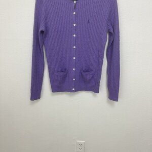 VTG 90s Ralph Lauren Sport Purple Cable Knit Sweater Grandma Preppy Soft Girl L