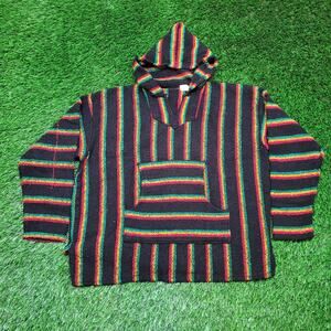 VTG 90s Rasta Baja Hoodie Drug Rug Boxy Cropped Fit Womens Oversized L/XL Reggae