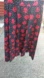 This elegant red floral print skirt is perfect for any occasion. The vibrant red flowers stand out beautifully against the black background, creating a striking look.