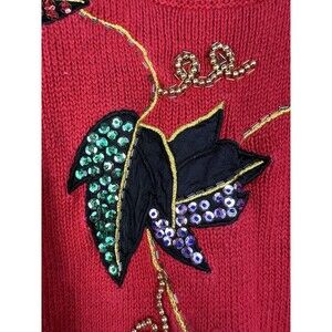 VTG 90s Red Thick Chunky Knit Sweater Women Plus Sz 20W Christmas Holiday Sequin