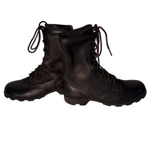 For sale is a pair of men's vintage 1997 Ro Search military black leather combat boots in a size 8.5 W.