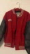Roots wool and leather varsity jacket Production Year: 90’s Made in Canada Classic Roots bomber with striking red body and sleek black sleeves. Perfect for casual wear.