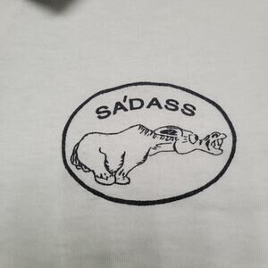 90s S’ADASS donkey pun polo white grey ringer cuff tee mens large funny vintage classic humor shirt shop retro now