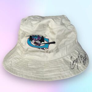 VTG 90s SIGNED "Casey the Bat" Authentic Greensboro Bats Adult Bucket Hat Beige