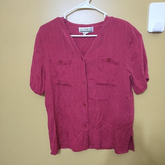 VTG 90s SK & Company Shirt Sleeve Lightweight Crinkle Silk Blouse Sz 8 Retro