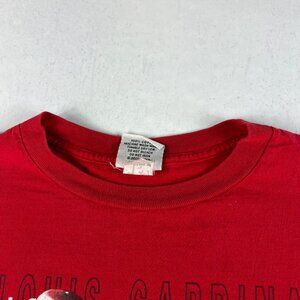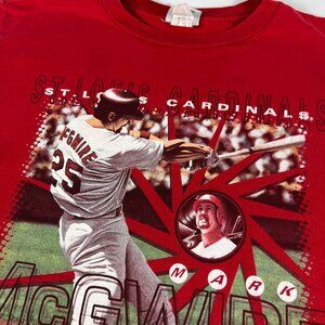 You are purchasing Vintage 90s 1999 Sports Attack St Louis Cardinals Mark McGwire Shirt Adult Fits Like A Medium Red Faded Thunder N Lumber Short Sleeve Tee Tagged Large