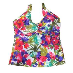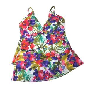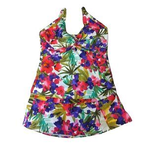 VTG 90s SUNSETS Tropical Print Tankini with Skirt Swimsuit Set 36D Large